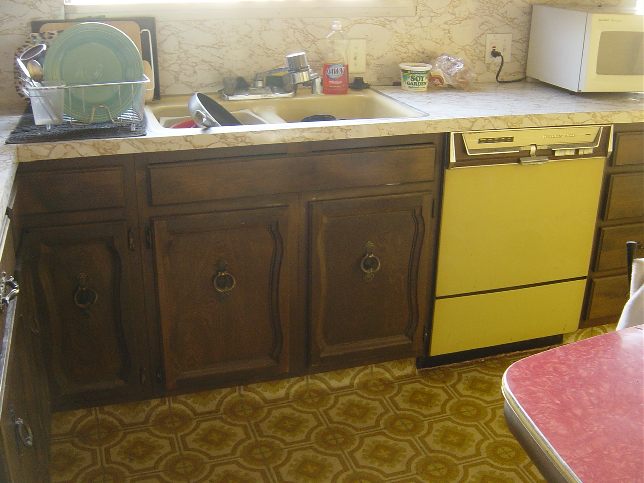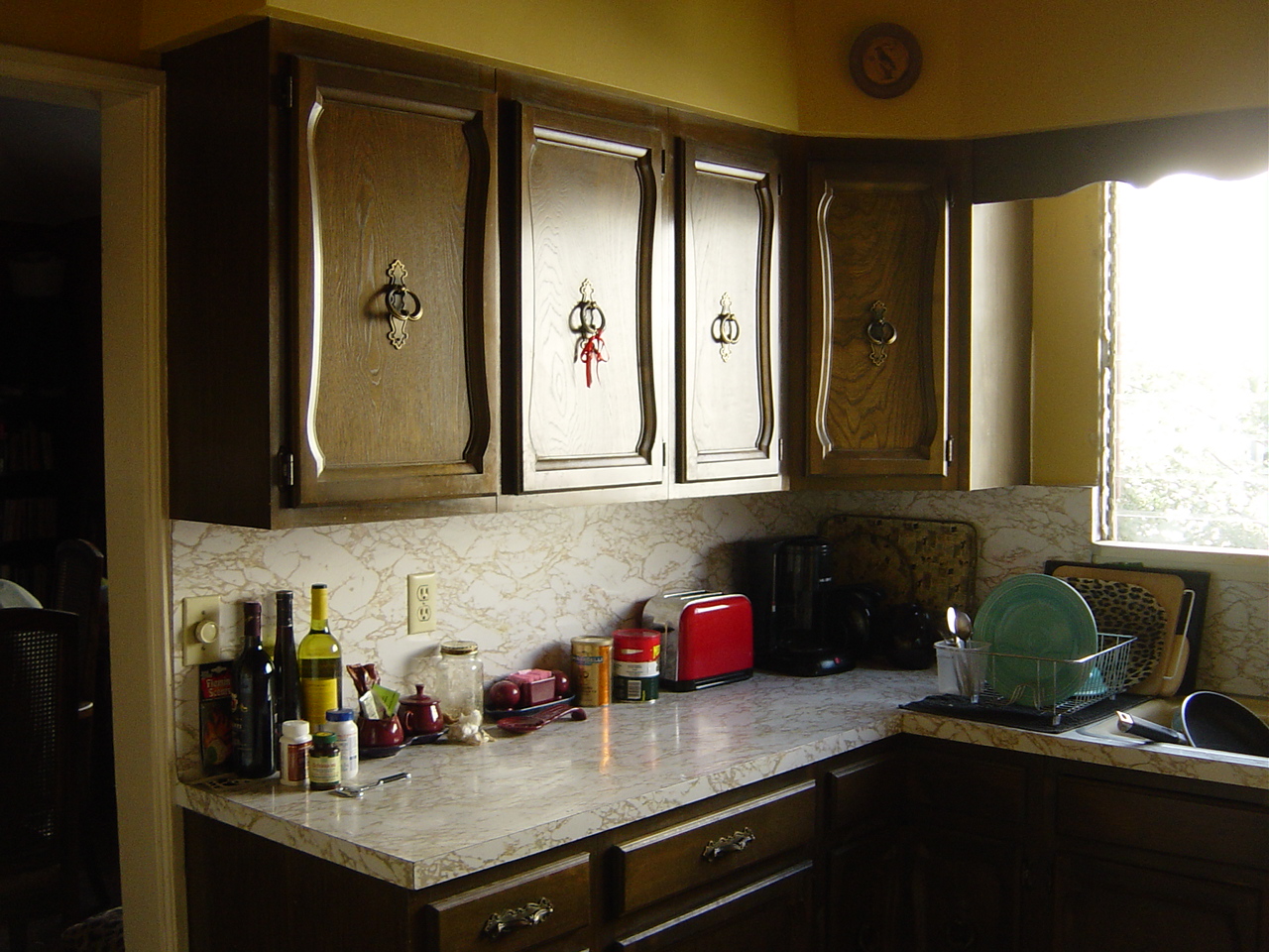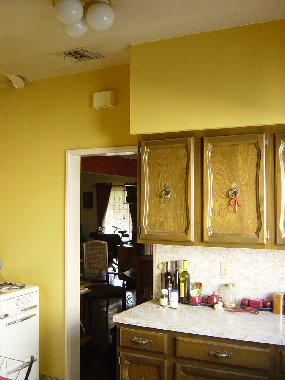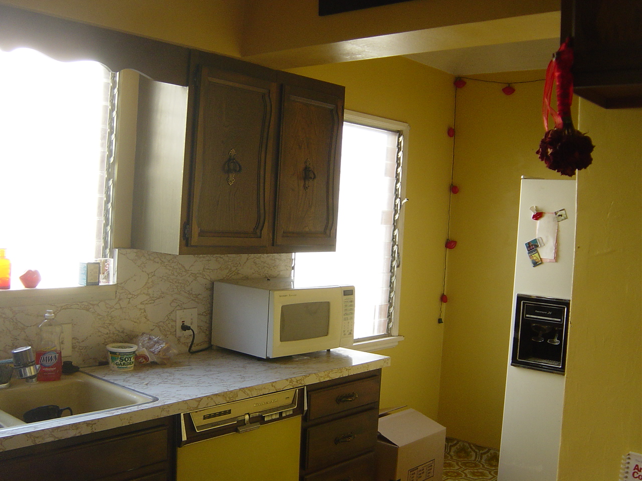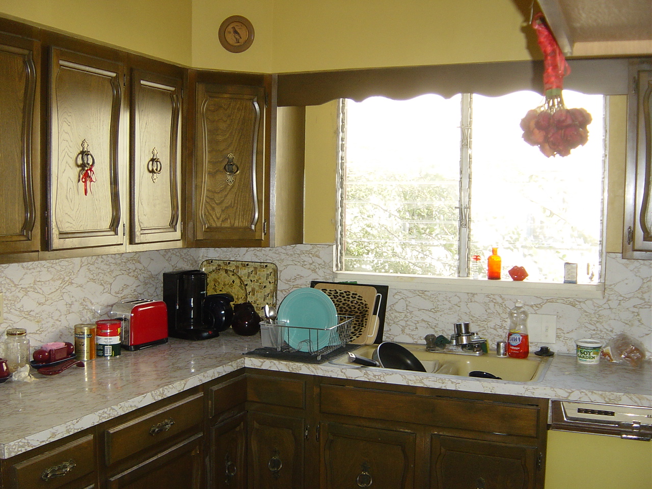 Tim tore out unnecessary soffits and discovered the kitchen window was originally twice the size! Kitchen was lighter and airier, and had twice the cupboard space.